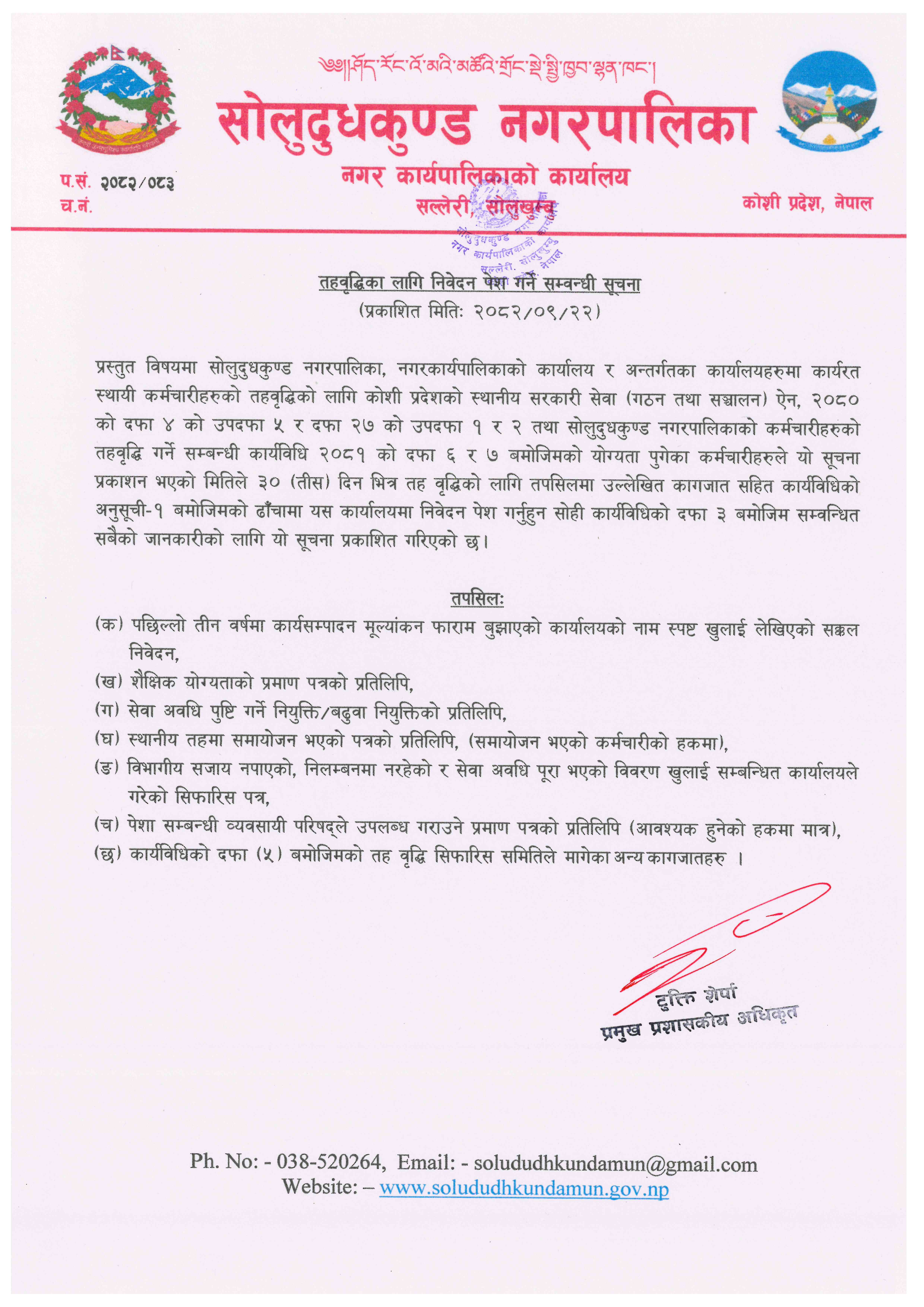 तहवृद्धिका लागि निवेदन पेश गर्ने सम्बन्धी सूचना ।