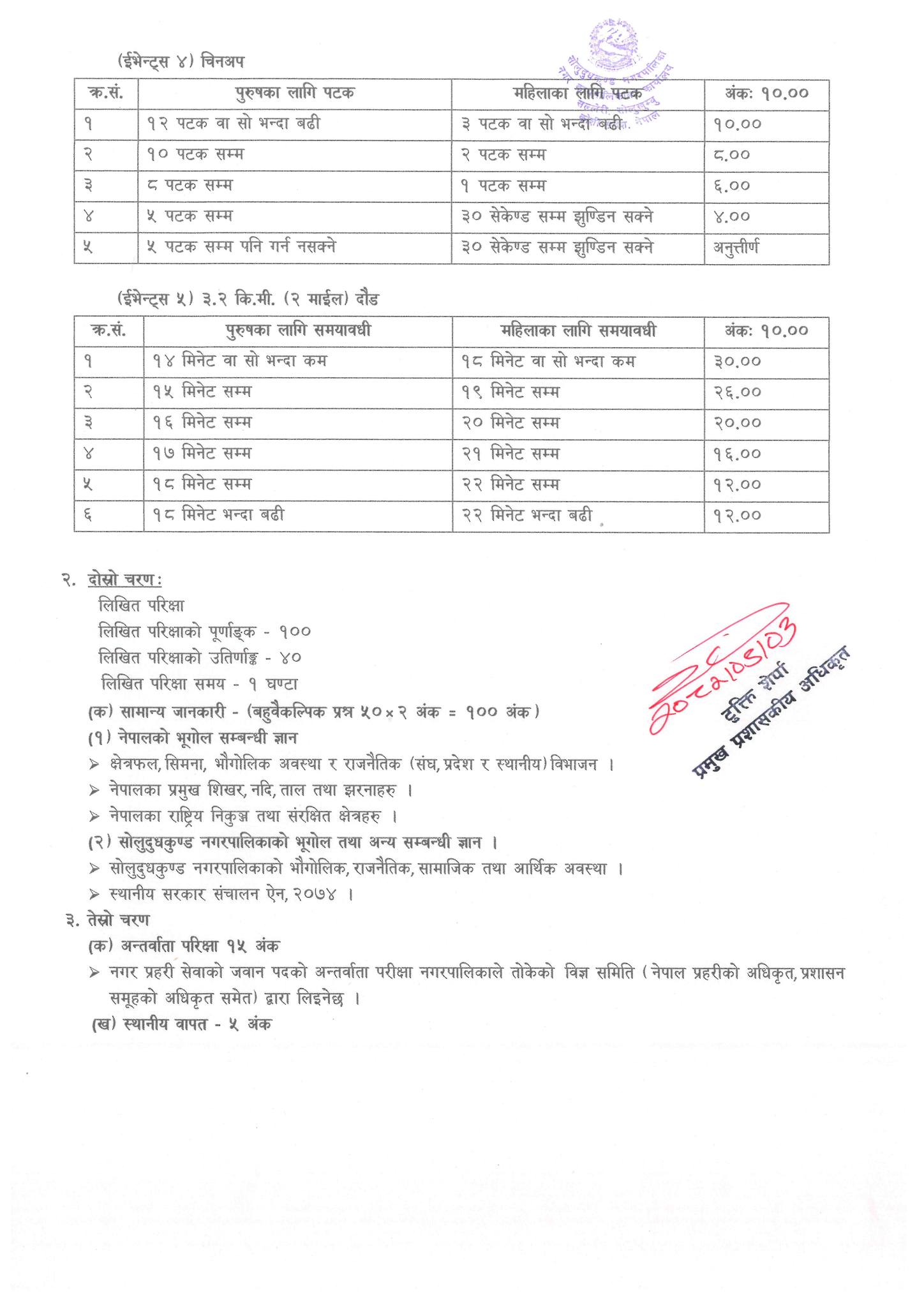 » नगर प्रहरी भर्ना सम्बन्धी सोलुदुधकुण्ड नगरपालिकाको सूचना ।