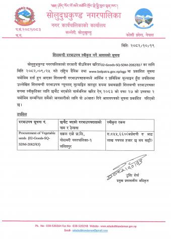 शिलबन्दी दरभाउपत्र स्वीकृत गर्ने आशयको सूचना