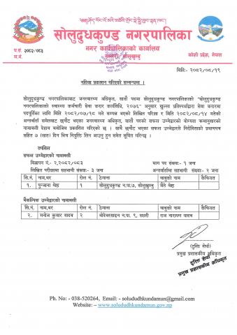 जनस्वास्थ्य अधिकृत सातौ पदको नतिजा प्रकाशन गरिएको सम्बन्धी सूचना ।
