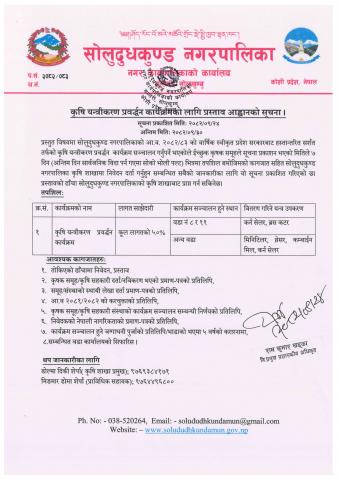 कृषि यान्त्रीकरण प्रवर्द्धन कार्यक्रमको लागि प्रस्ताव आह्वानको सूचना ।