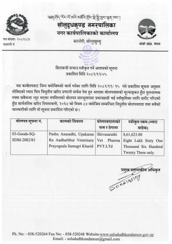सिलबन्दी दरभाउ स्वीकृत गर्ने आशयको सूचना ।
